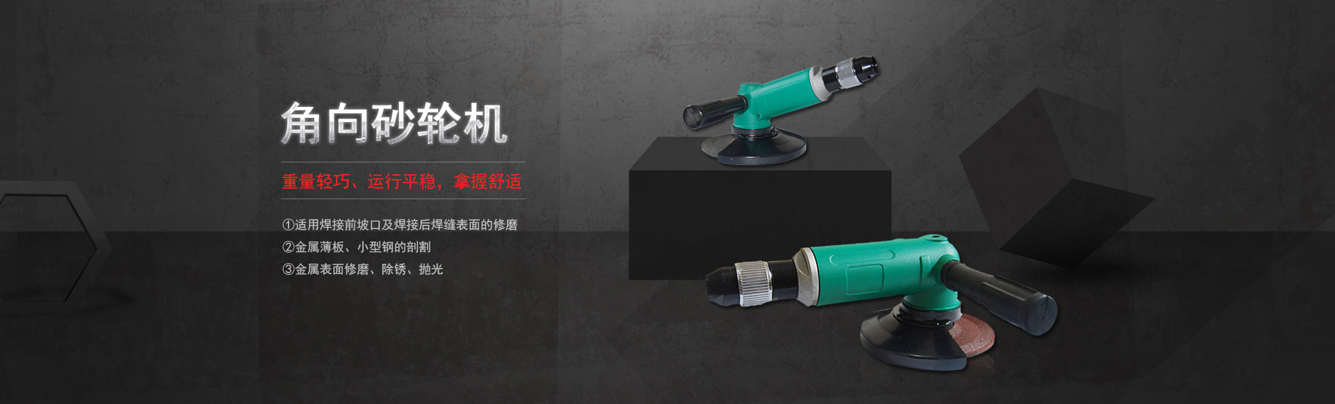 主要生產(chǎn)各式角向砂輪機(jī)、直柄砂輪機(jī)、油漆攪拌機(jī)、水冷拋光機(jī)、端面砂輪機(jī)、工業(yè)級(jí)倒角機(jī)、氣鉆、氣扳機(jī)、 氣動(dòng)螺絲刀等產(chǎn)品